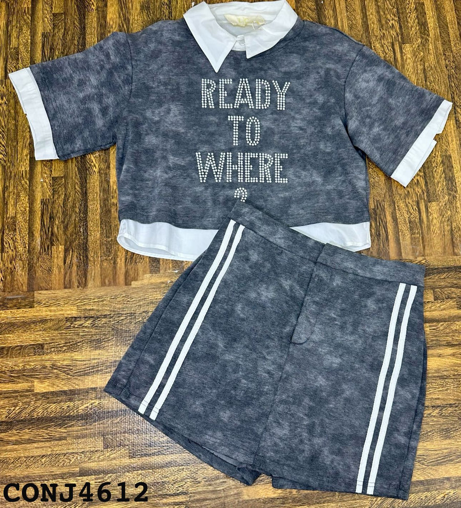 CONJUNTO TOP MODEL S/ MANGA CUELLO / BOTONES