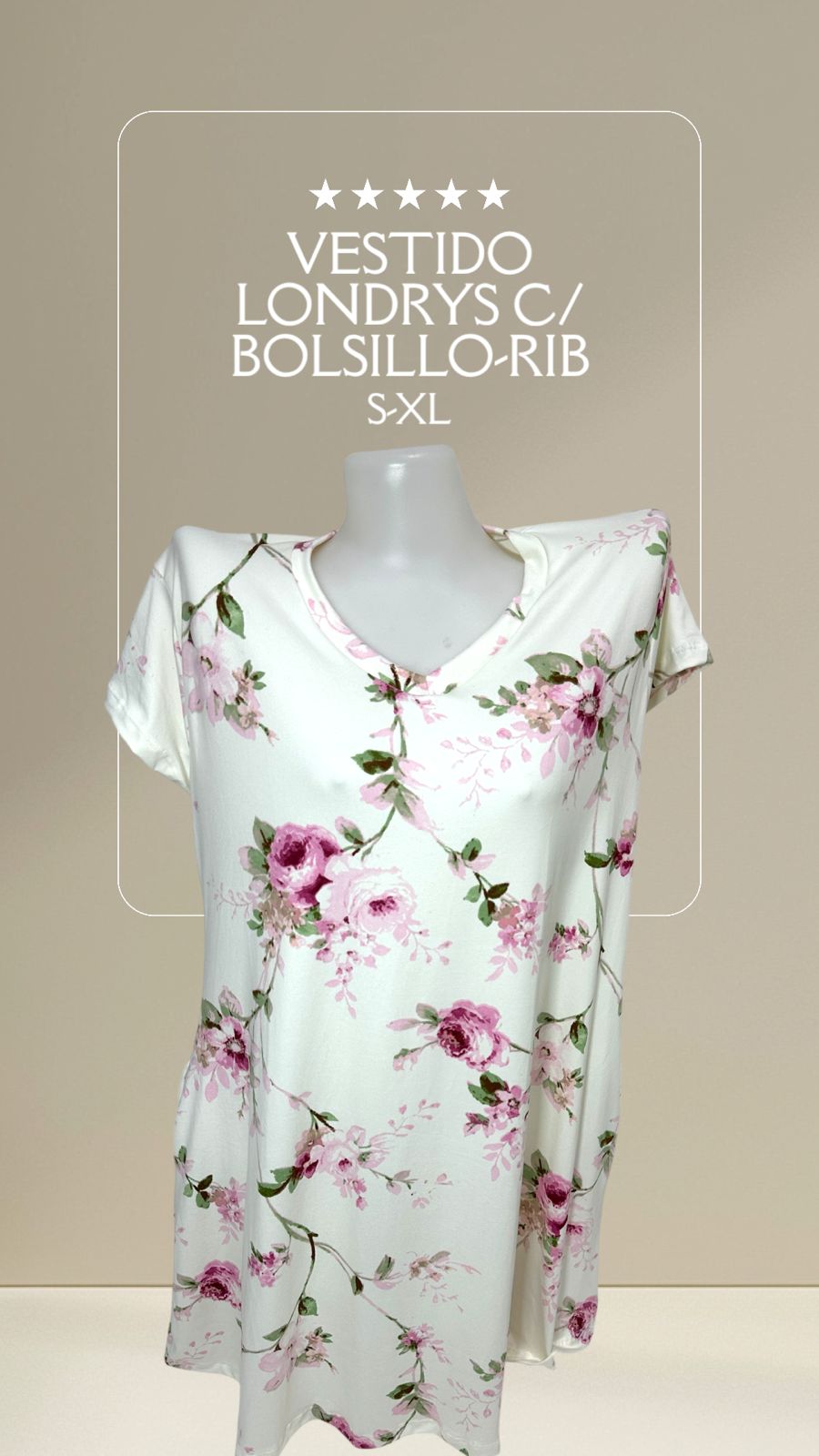 VESTIDO LONDRYS C/ BOLSILLOS DURAZNO-RIB S-XL