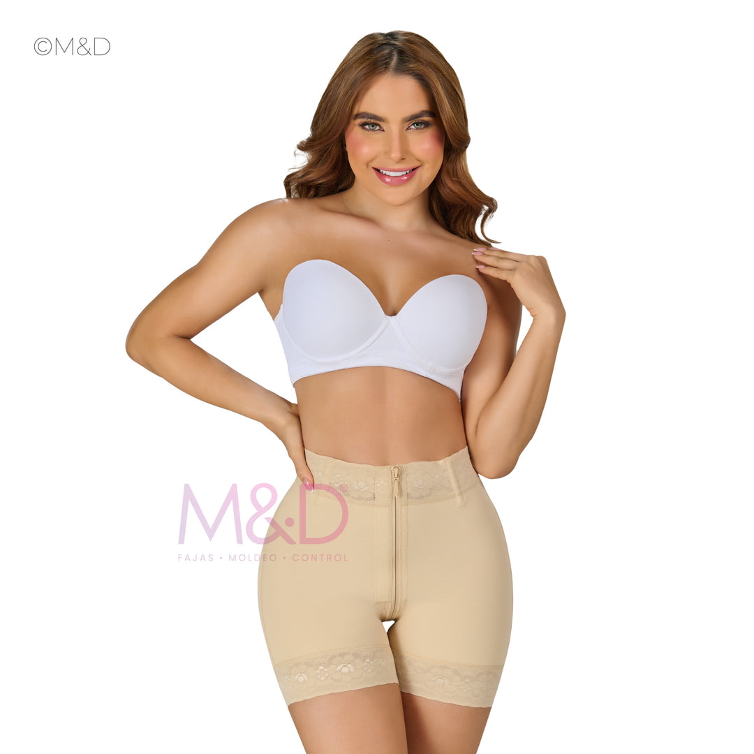 Estos shorts cortos M&D con cierre completo son la combinación perfecta de estilo y comodidad. Su diseño versátil te permite lucir fabulosa en cualquier ocasión, mientras que su cierre completo garantiza un ajuste seguro y favorecedor. Añade esta pieza esencial a tu guardarropa para crear infinidad de looks irresistibles.