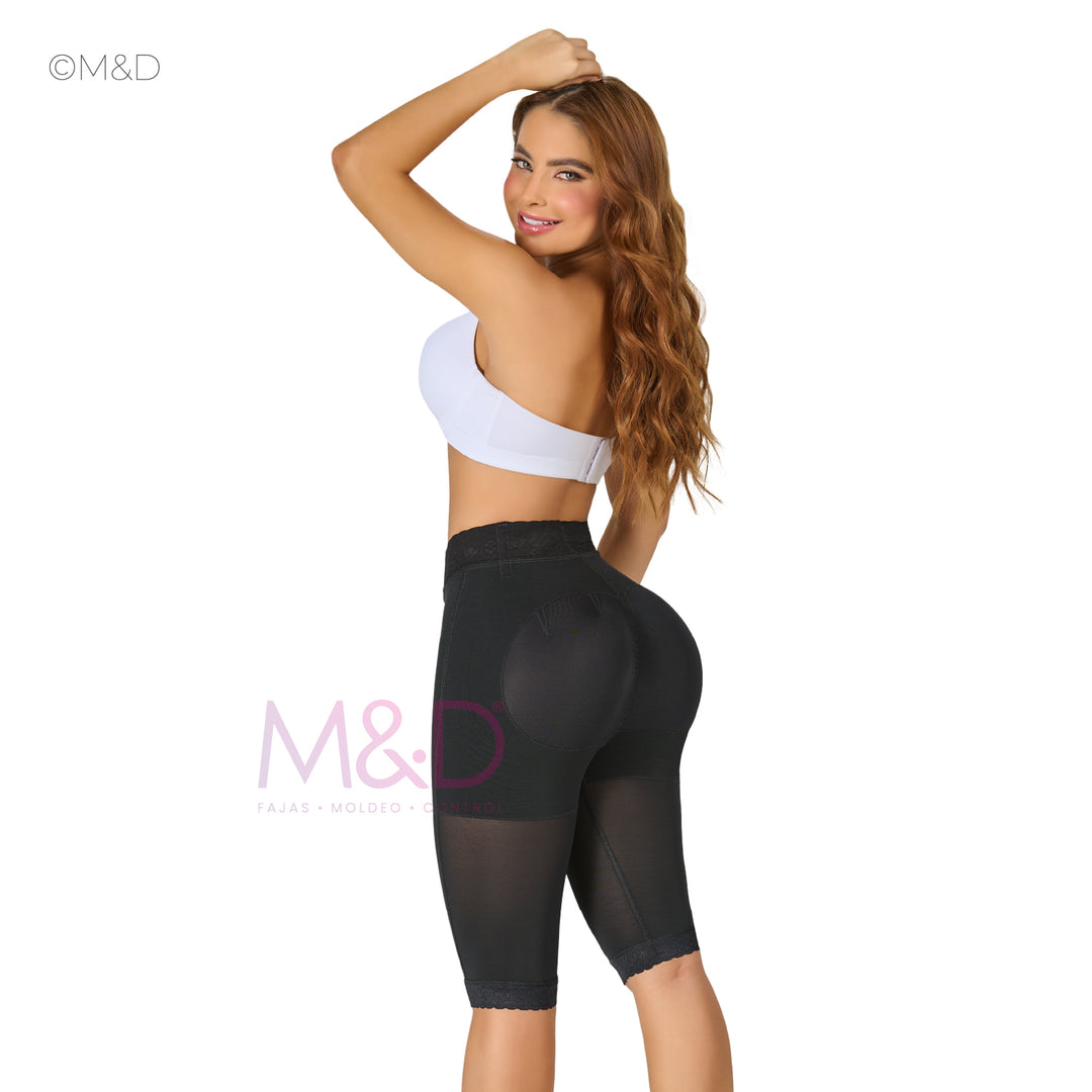 Estos shorts largos M&D están diseñados específicamente para realzar tus curvas naturales con su efecto levanta glúteos. Su corte estratégico y tela de alta compresión moldean tu figura mientras proporcionan comodidad durante todo el día. Luce una silueta más definida y atractiva con este imprescindible para tu guardarropa.